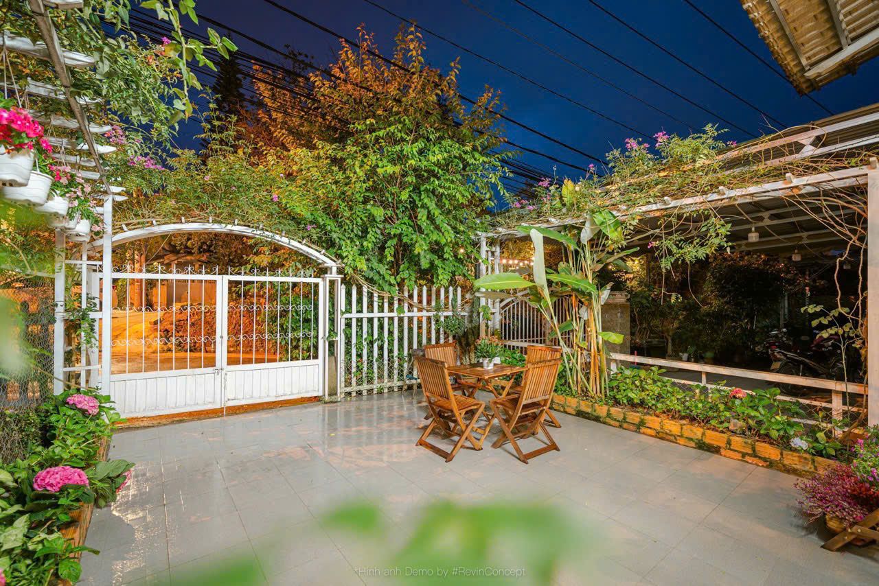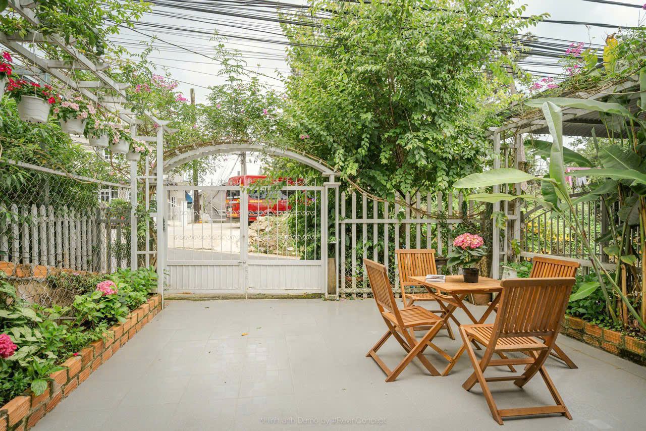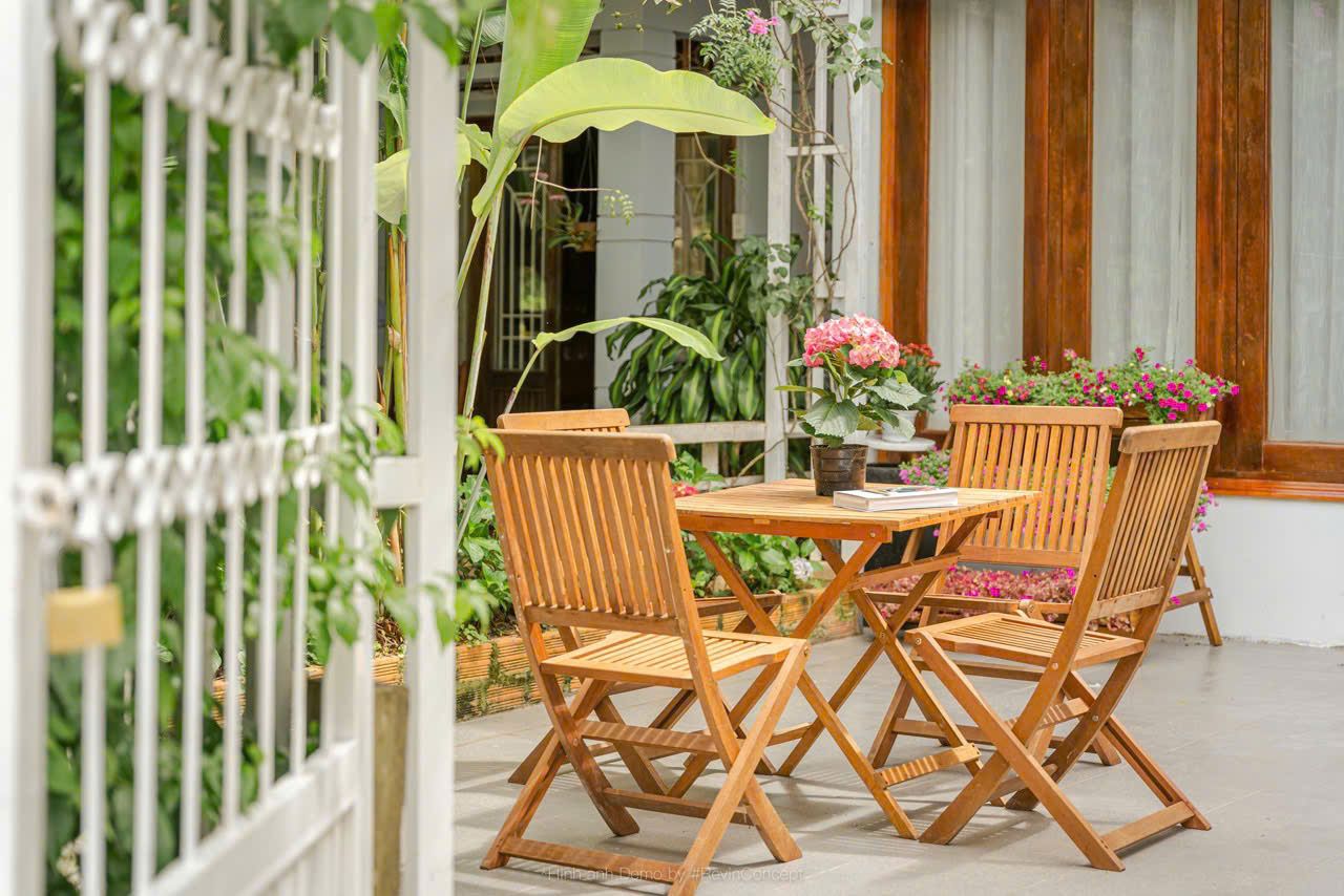 Sân BBQ riêng, rộng rãi, có bàn ghế ngoài trời